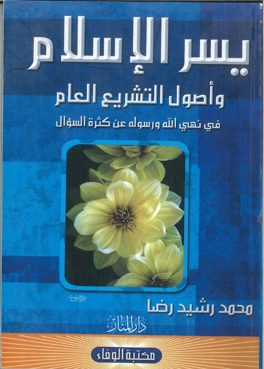الشيخ (محمد رشيد رضا) رحمه الله – عمل بالصحافة لتكون منبراً لإسلاح المة وإخراجها من جمودها تخلفها عن الركب الأممى- ومن تراثه وكتاباته هذا الكتاب الذى بين يدينا يقوم بتفسير بعض النصوص ليبين بها سهولة ويسر الدين الإسلامي وذلك دون إفراط أو تفريط.. هذا بعد أن راعه ما أضفاه رجل الدين على أراء السلف من قدسية، وضعوها فى مرتبة القرآن و السنة لؤخذ منها ويرد. يقدم المؤلف تفسير أيه النهى عن السؤال ويتناول الرأى والقياس بين تأييد ومعاضة، وغيرها مما يدور فى فلك الفقه والتشريع.