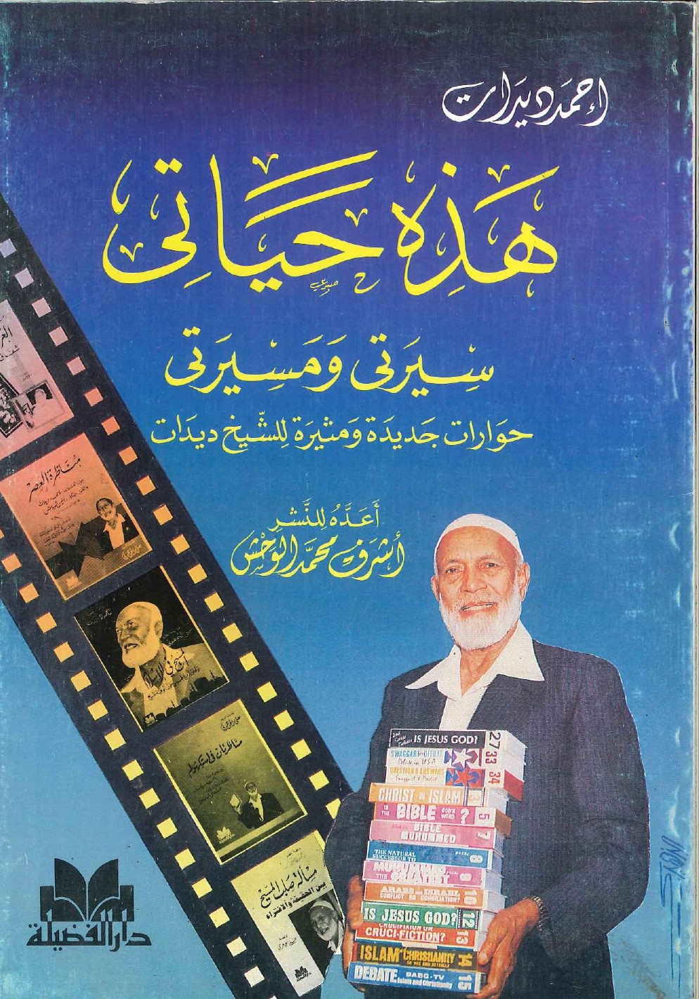 هذه حياتي: سيرتي ومسيرتي “للشيخ “أحمد ديدات” ..يكتب فية قصتة حياتة ..ربما يعرفة الكثيرون ولكن لا يعرفون قصة حياتة ..هى قصة حياة جديرة بل هي أكثر من ذلك ..فكتب الدنيا ربما لا تكفيها.الشيخ “أحمد ديدات “داعية إسلامية ذاع صيته في أوربا أمريكا وكذلك في الدول العربية .. ناقش وناظرالكثير من القضايا و النقاط المحورية في المسيحية واليهودية بعلمه الغزير في مجال مقارنات الأديان..مسيرة طويلة في الدفاع عن الإسلام والأفكار الخاطئة عنه وعن رسوله صلى الله عليه وسلم ، ولكن كيف كانت البداية في هذه المسيرة؟ .. كيف كان الطريق من بلدة “تادكيشنار” الهندية مرورا بجنوب إفريقيا وصولا إلى العالم أجمع؟ .. هذه الاسئلة وغيرها مما قد يدور في الأذهان حول سيرة هذا الرجل الفريد وأجوبتها تم تجميعها وتفريغها من شرائط الفيديو والكتب في هذا الكتاب، الذي يأخذنا إلى عالم الشيخ “أحمد ديدات” ويحبو بنا خطوة بخطوة .. لنرى حياته وسيرته ومسيرته مع الإسلام والأديان ، بالاضافة إلى بعض الحوارات والتفاصيل عن عمل المركز الدولي للدعوة الاسلامية والاجيال الجديدة في مجال الدعوة الإسلامية ودور الشيخ في هذا كله